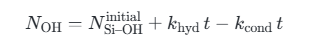 このうち、khydは加水分解速度定数、kcondは脱水縮合速度定数、処理時間である。このモデルは、熱処理または湿熱処理による水酸基の進化傾向を定量的に記述することができます。